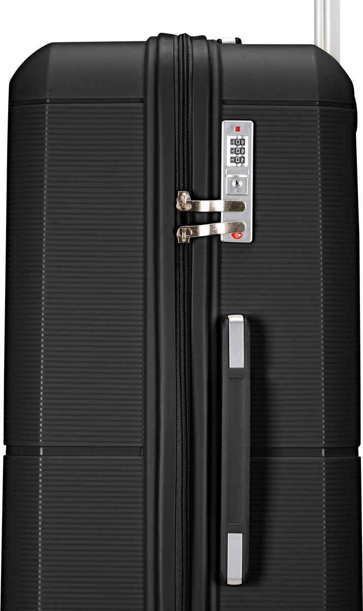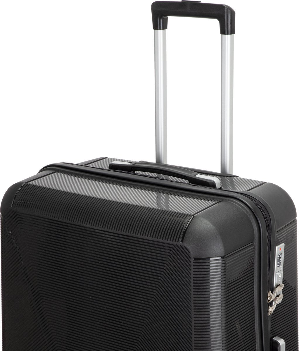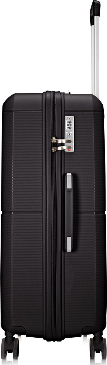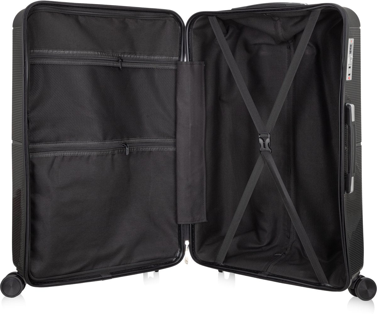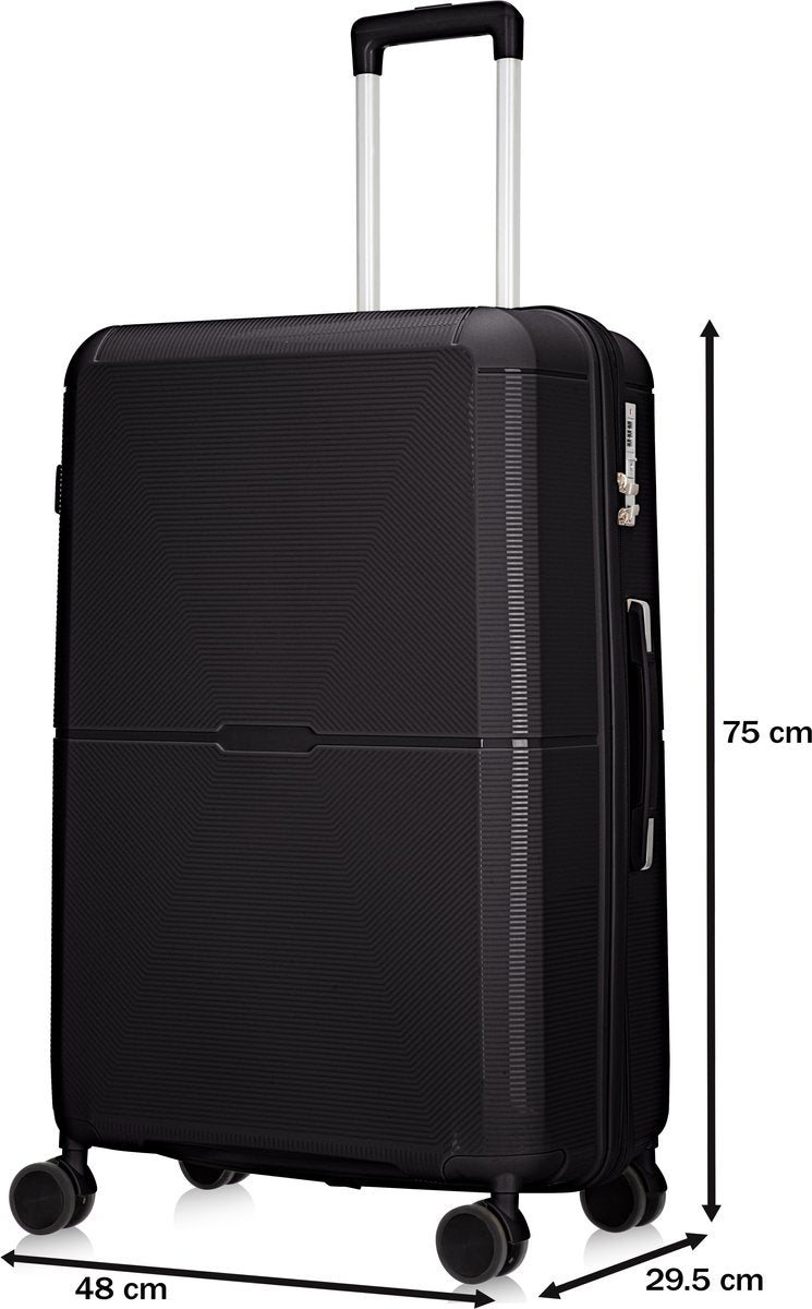• Felszereltség: TSA kombinációs zár, 360°-os forgótengelyek, hevederek, belső rekeszek, kihúzható teleszkópos fogantyú