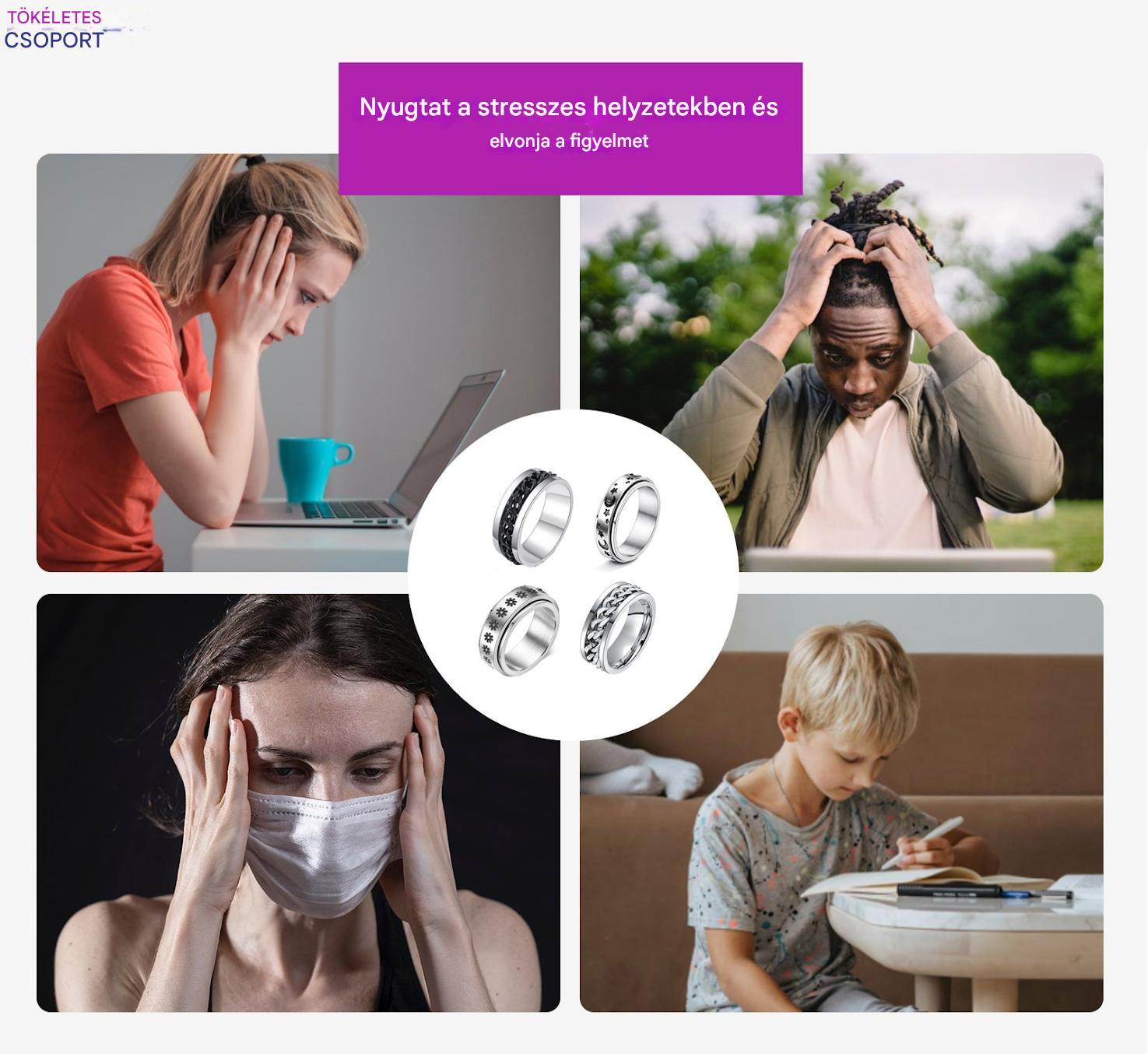 Fedezd fel SpinCalm Gyűrűnket, a diszkrét eszközödet a stressz és nyugtalanság ellen.