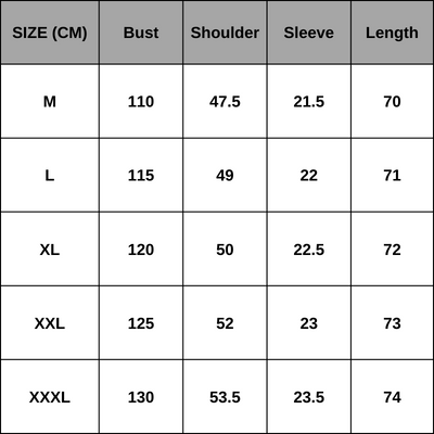Méret Mellbőség Vállszélesség Ujjhossz Teljes hossz