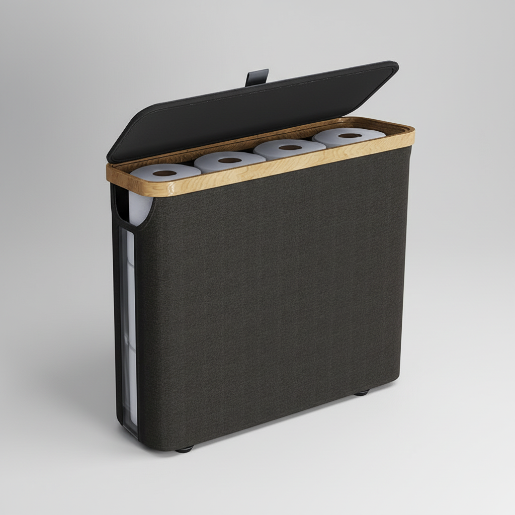 Soha többé nedves vagy rendezetlen toalettpapírtekercsek. Stílusos tárolás, amely véd és helyet spórol.