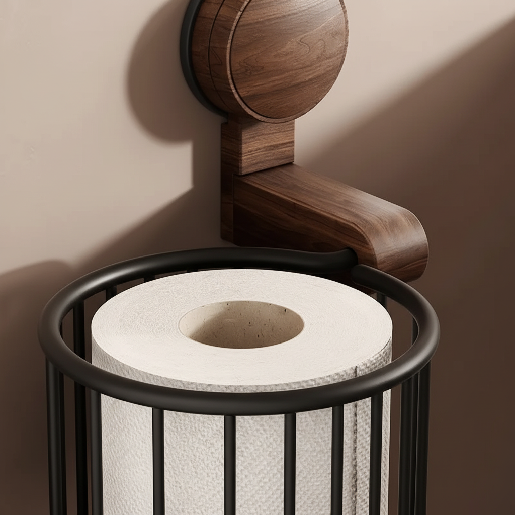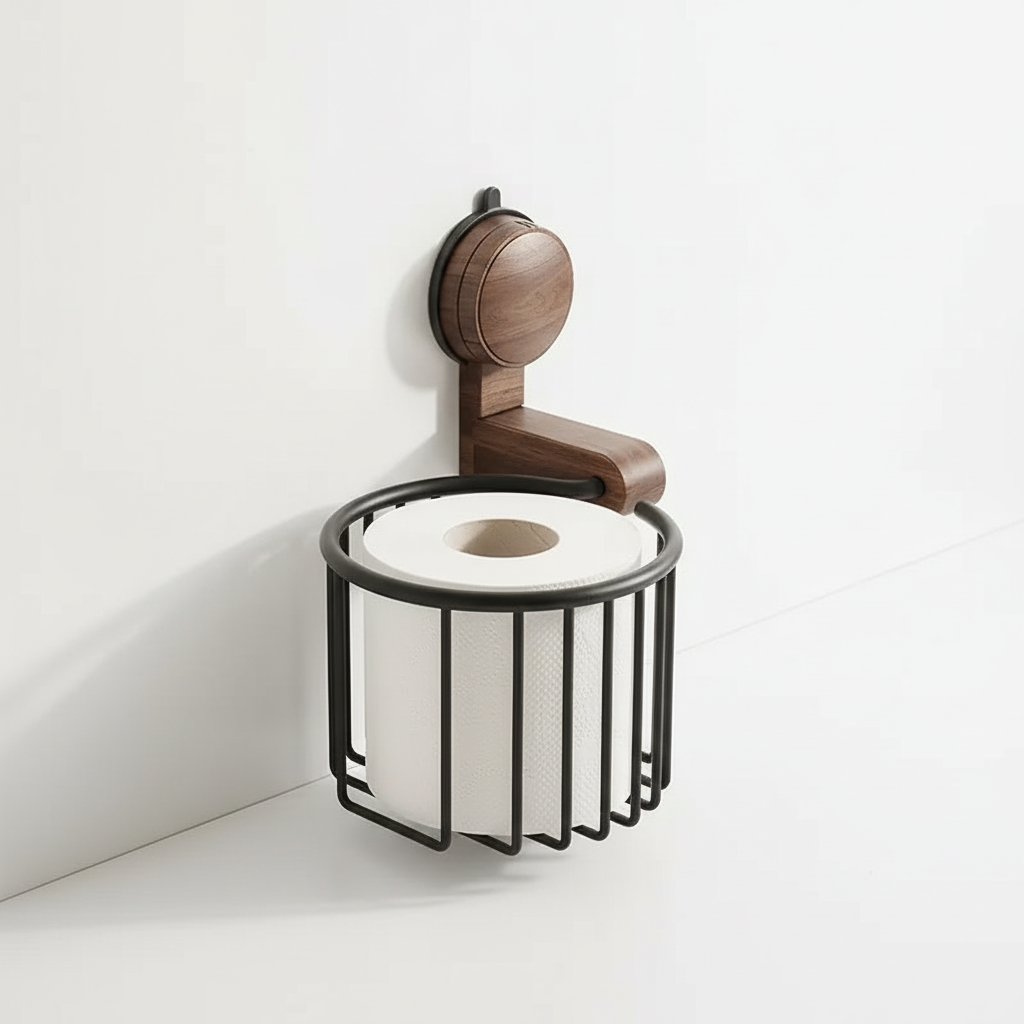 Túl szűk polcok és nedves falak rendezetlenné és praktikátlanná teszik a fürdőszobát. Ez a falra szerelhető WC-papírtartó megoldja a problémát fúrás nélküli szívókorongos szerelésével, amely nem okoz falkárosodást. Tömbön készült diófa és strapabíró fém meleg természetességet hoz a fürdőszobába, miközben stabil marad. A víz- és penészálló konstrukció biztosítja a tartós higiéniát még nedves környezetben is.