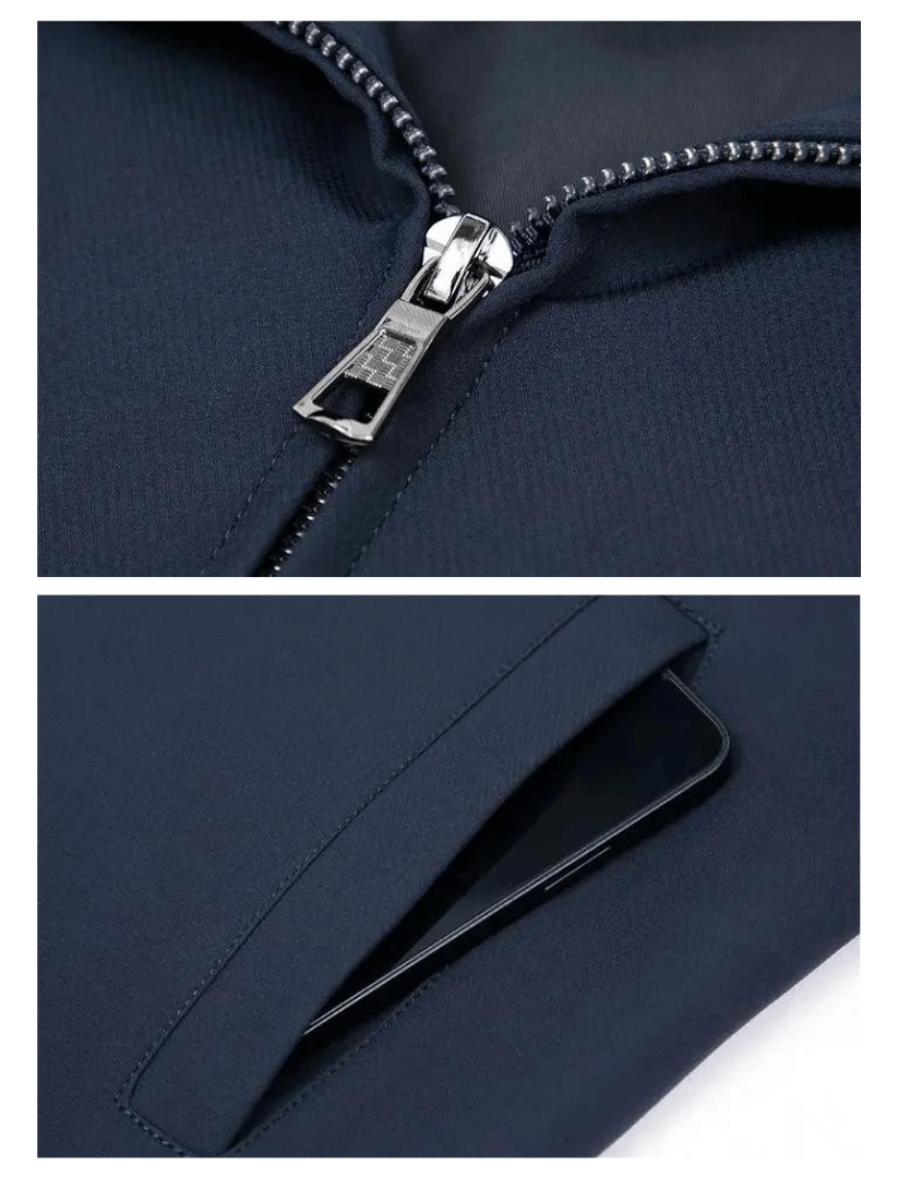 • Funkcionális részletek cipzórral, zsebekkel és ujjnál gombokkal