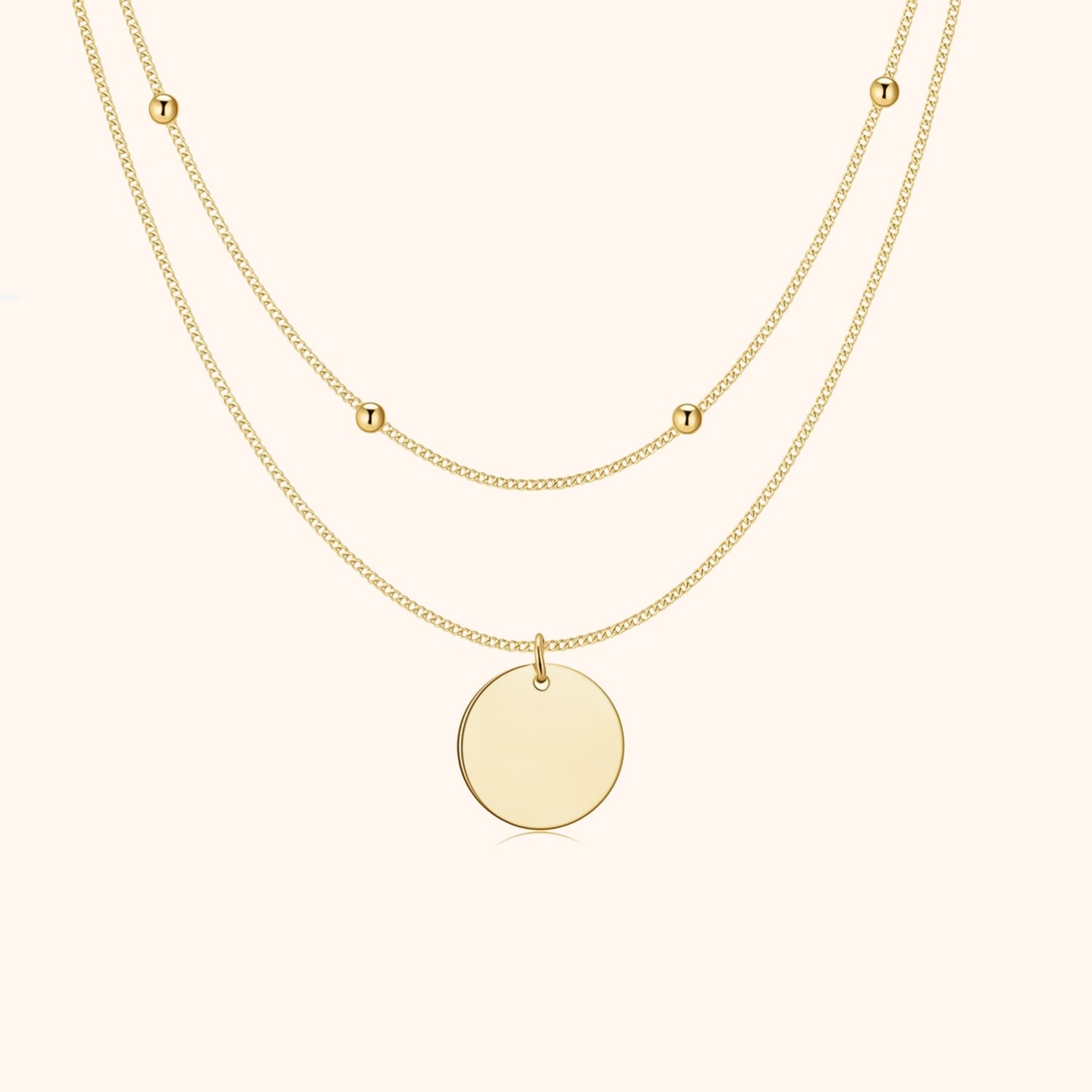 A Amélie Dupla Medál Nyakláncunk egy kifinomult ékszer két rétegből áll: egy trendi medálos láncból és egy finom golyós láncból. Magas minőségű ezüstből készült, ezüst színben vagy 18K aranyozott kivitelben kapható, és stílusos, sokoldalú megjelenést kínál. A állítható hosszúság tökéletes minden alkalomra.