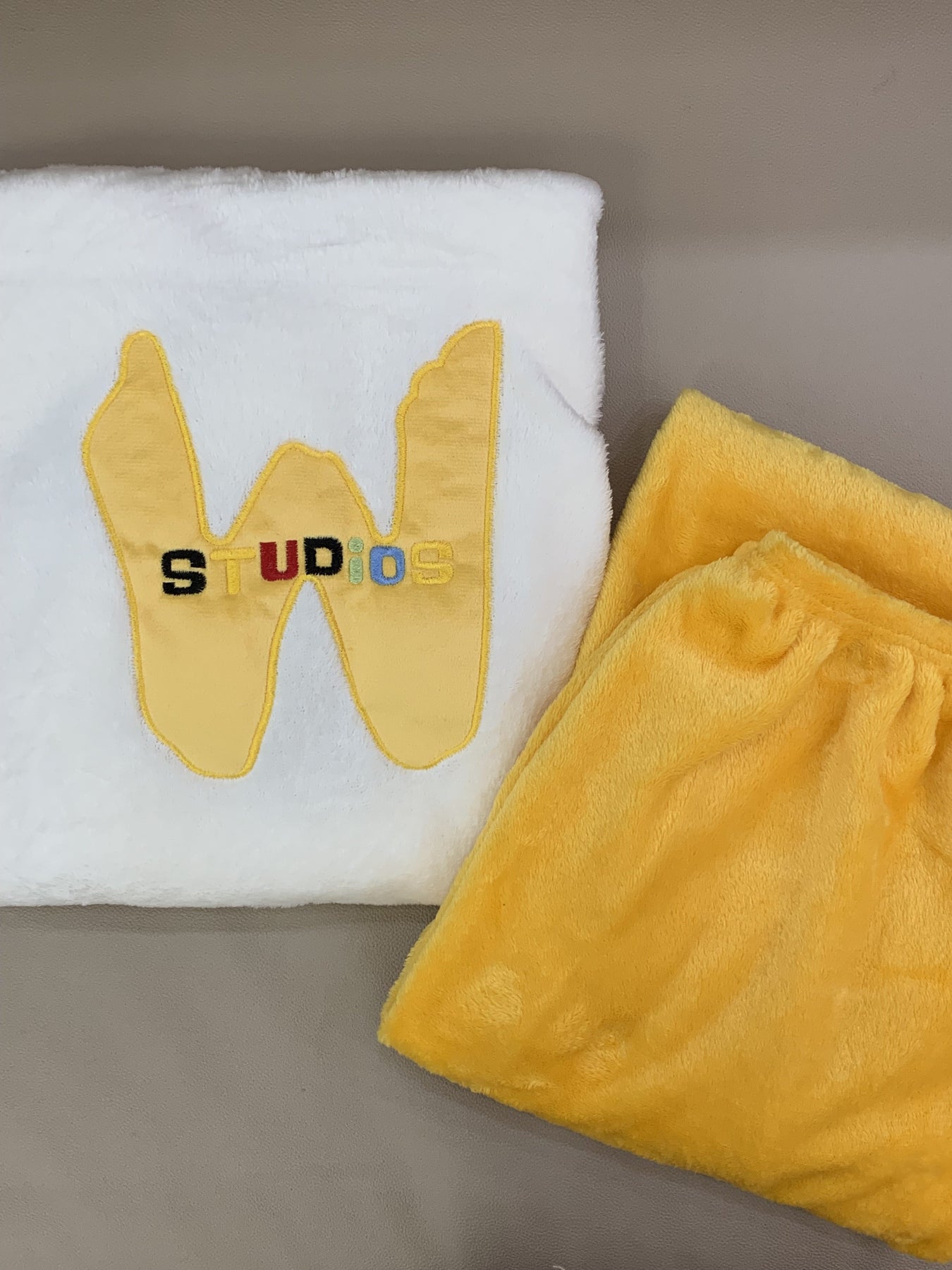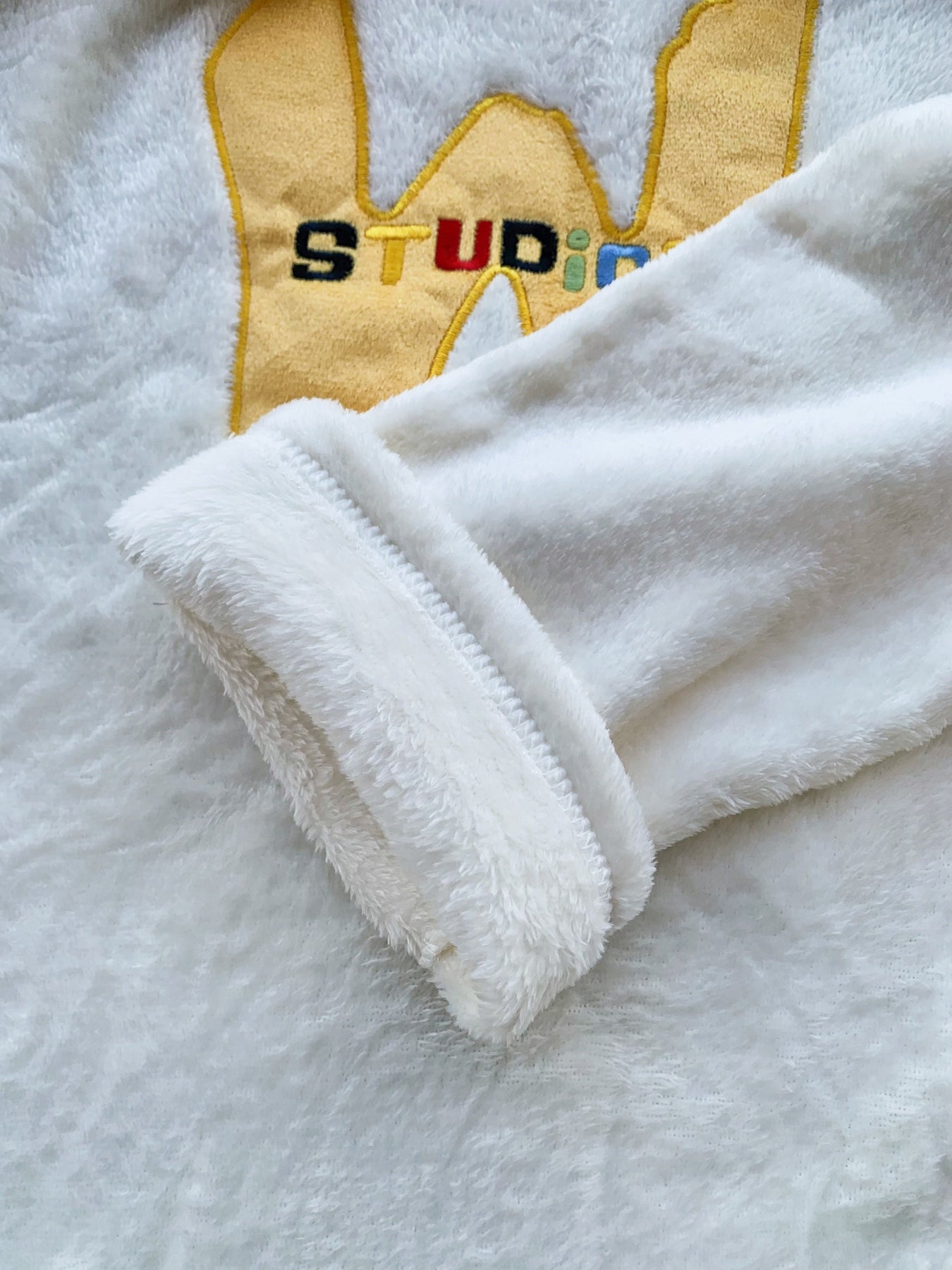 Ez a pizsama szett ideális keveréke a kényelemnek és a stílusnak a hideg napokra. Puha fleece anyagából kellemes meleget és jóleső viselési érzést biztosít. A bájos hímzett részletek játékos jelleget kölcsönöznek a szettnek, így az különlegessé válik. Kényelmes szabásával és megfelelő nadrágjával ideális pihenéshez vagy alváshoz.