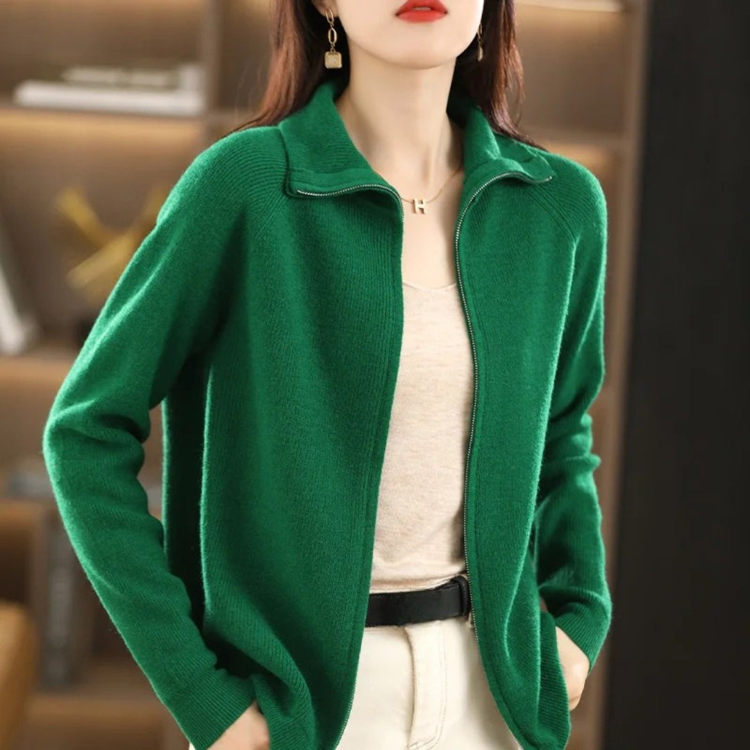 A Celeste egy kardigán, amely tökéletesen ötvözi a meleget, a kényelmet és a stílust. A puha anyag kellemesen érintkezik a bőrrel, így ideális választás a mindennapi használatra a hűvösebb hónapokban. A dupla cipzárnak köszönhetően a kardigánt praktikus és divatos módon is viselheted, az alkalomtól függően. Akár egy laza szettet választasz, akár egy gondosabb megjelenést, a Celeste zökkenőmentesen alkalmazkodik.