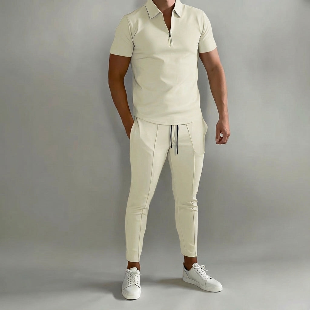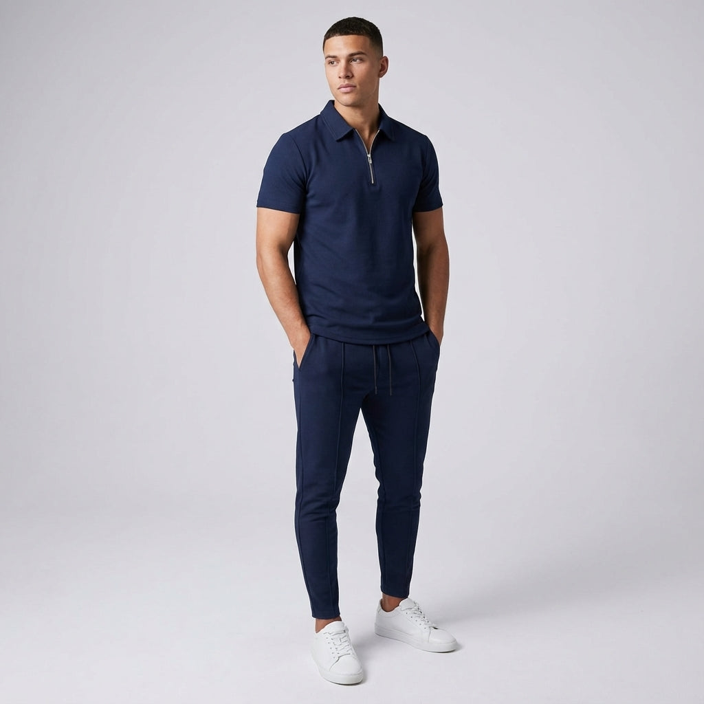 Túl sok szabadidőruha túl merev, vagy rövid idő után kényelmetlennek érződik. Ez a szett megoldja a problémát a könnyű és rugalmas anyaggal, amely szabadságot biztosít a mozgásban. A kiváló minőségű poliészter puha tapintást biztosít, miközben strapabíró a mindennapokban. A divatos dizájn sokoldalúan használható a tréningektől a laza találkozókig.