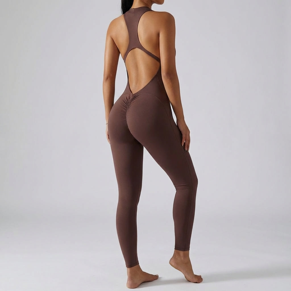 Nehéz olyan edzőruhadarabot találni, amely egyaránt funkcionális és vonzó. Ez a testhez simuló egyberuha megoldja a problémát rugalmas, sima mikroszálas anyaggal, amely alkalmazkodik minden mozdulathoz. A hátul található kivágás szellőzést biztosít és modern megjelenést kölcsönöz. A hátsó redőzött varrás kiemeli a természetes formát és egy definiált sziluettet ad.