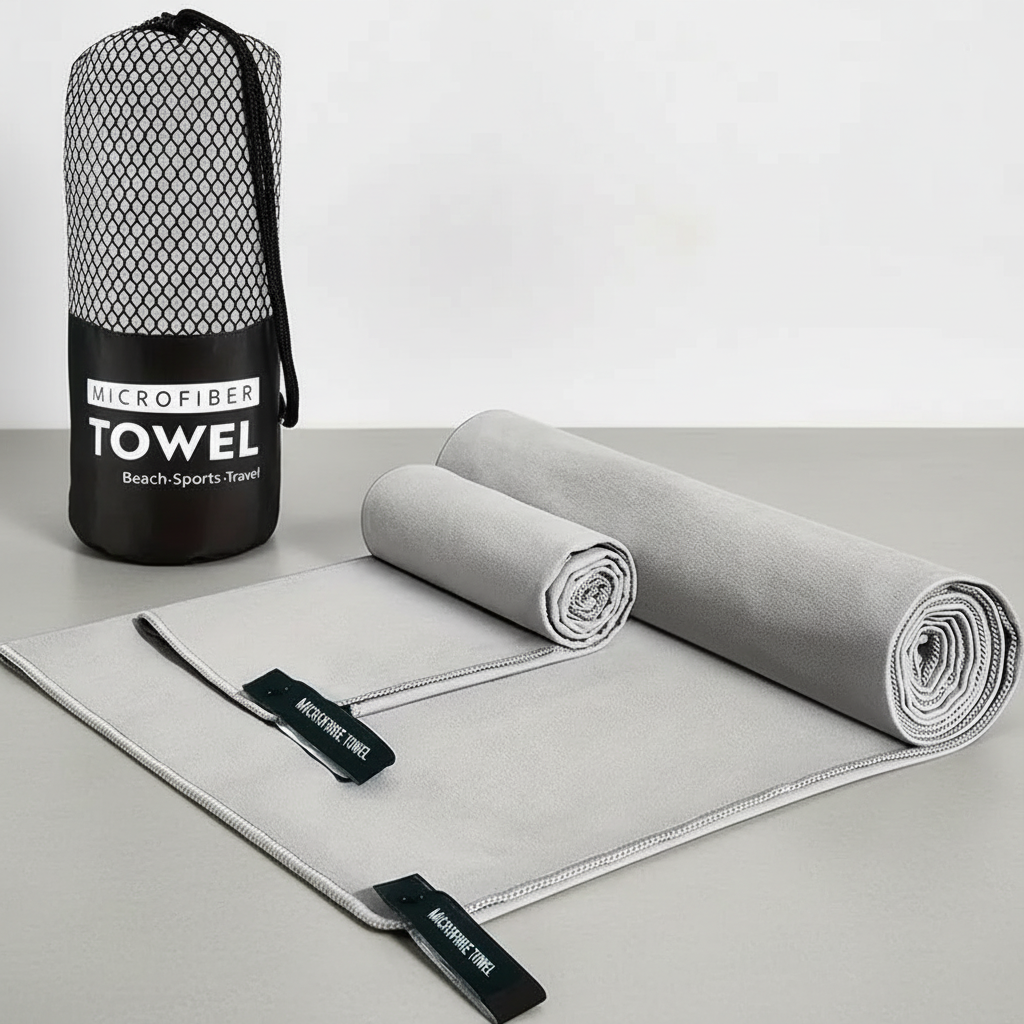 A nehéz, nedves törölközők gyakran elronthatják az utazás élményét, és sportoláskor is praktikusak. Ez a törölköző szett megoldást kínál a nagyon könnyű mikroszálas anyaggal, amely gyorsan szárad és kevés helyet foglal. Sok nedvességet felszív, miközben kellemesen puha érzést nyújt. A praktikus méretek könnyedén elférnek táskába vagy hátizsákba, és használat után egyszerűen felakaszthatók.