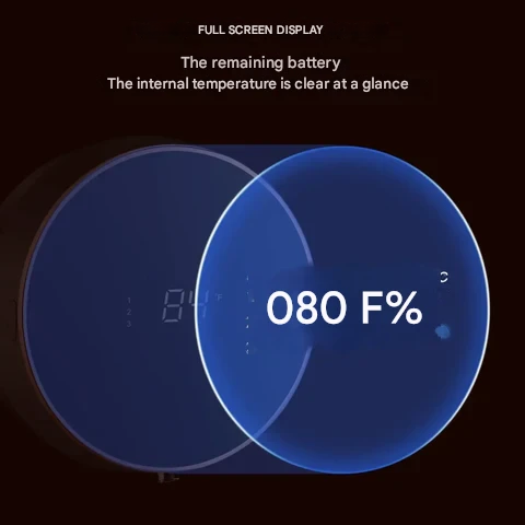 • Teljesen vízálló kijelző: Az IPX5 kijelző megjeleníti az akkumulátor szintet és belső hőmérsékletet