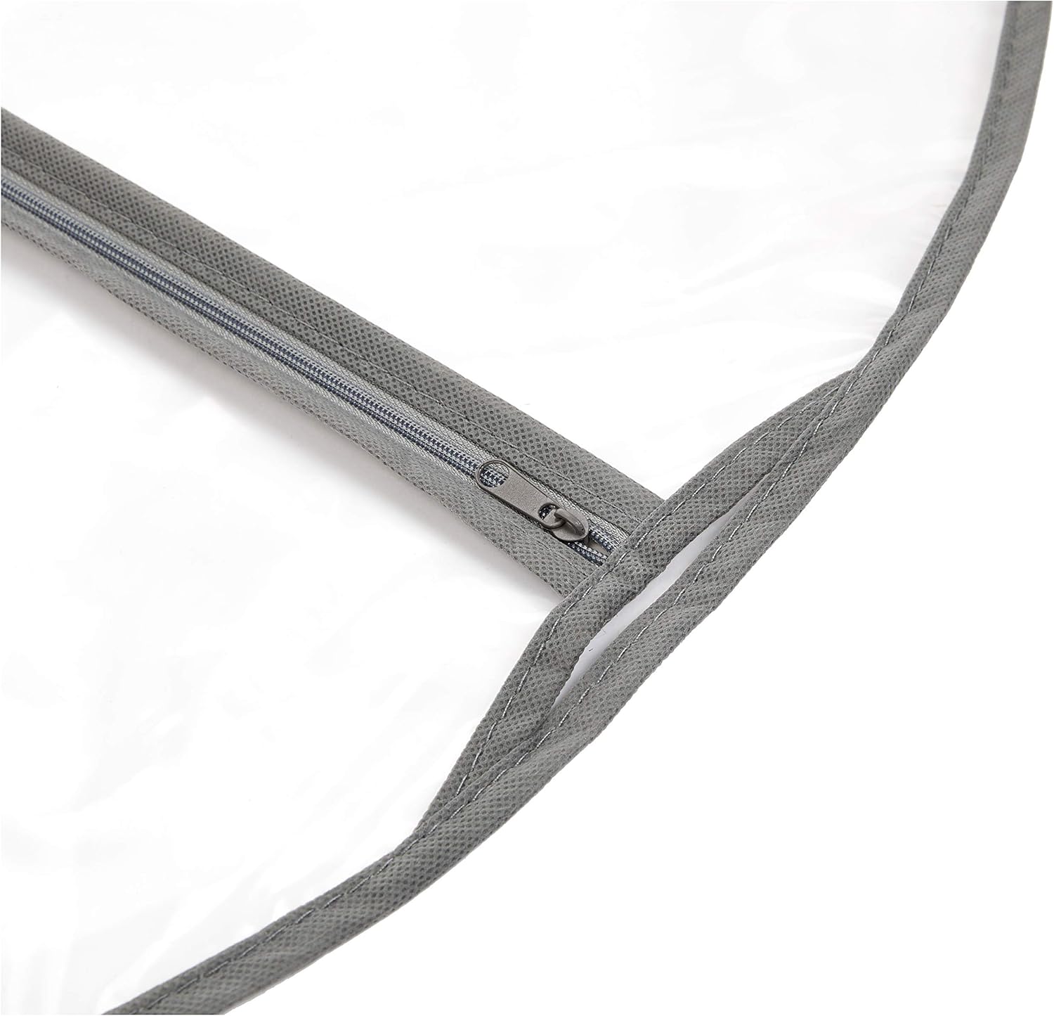 A strapabíró, vízálló PEVA-ból készült zipzáros ruhaköpenyek ideálisak öltönyök, ruhák, kabátok és szezonális ruházat számára. Az átlátszó felület lehetővé teszi, hogy anélkül azonosítsa a tartalmát, hogy kinyitná a táskát. Csomagonként négy közepes és egy nagy méret található, okos megoldás tárolásra és utazásra egyaránt. Könnyű és kompakt, ezek a táskák könnyen csúsznak a vállfákra, és megvédik a ruhákat a portól, nedvességtől és gyűrődéstől.