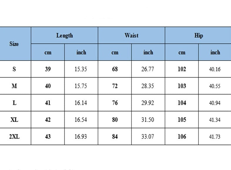 Méret Hossz (cm) Derék (cm) Csípő (cm)