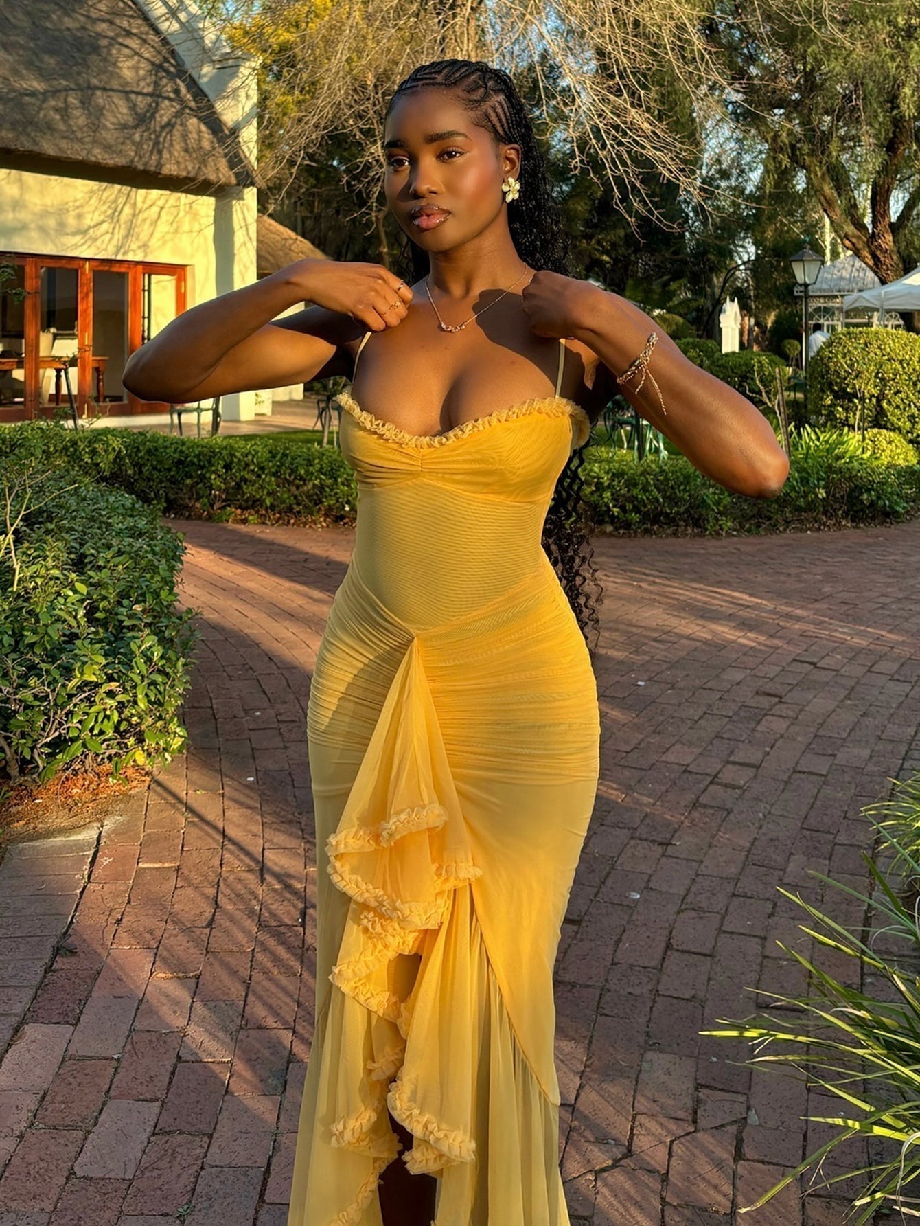 Trendi maxi ruha volánnal és spagetti pántokkal – Loyza