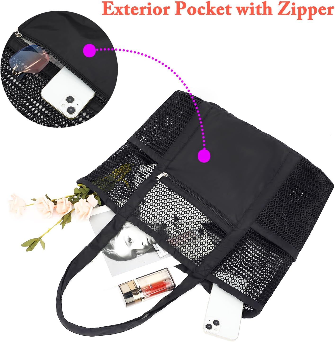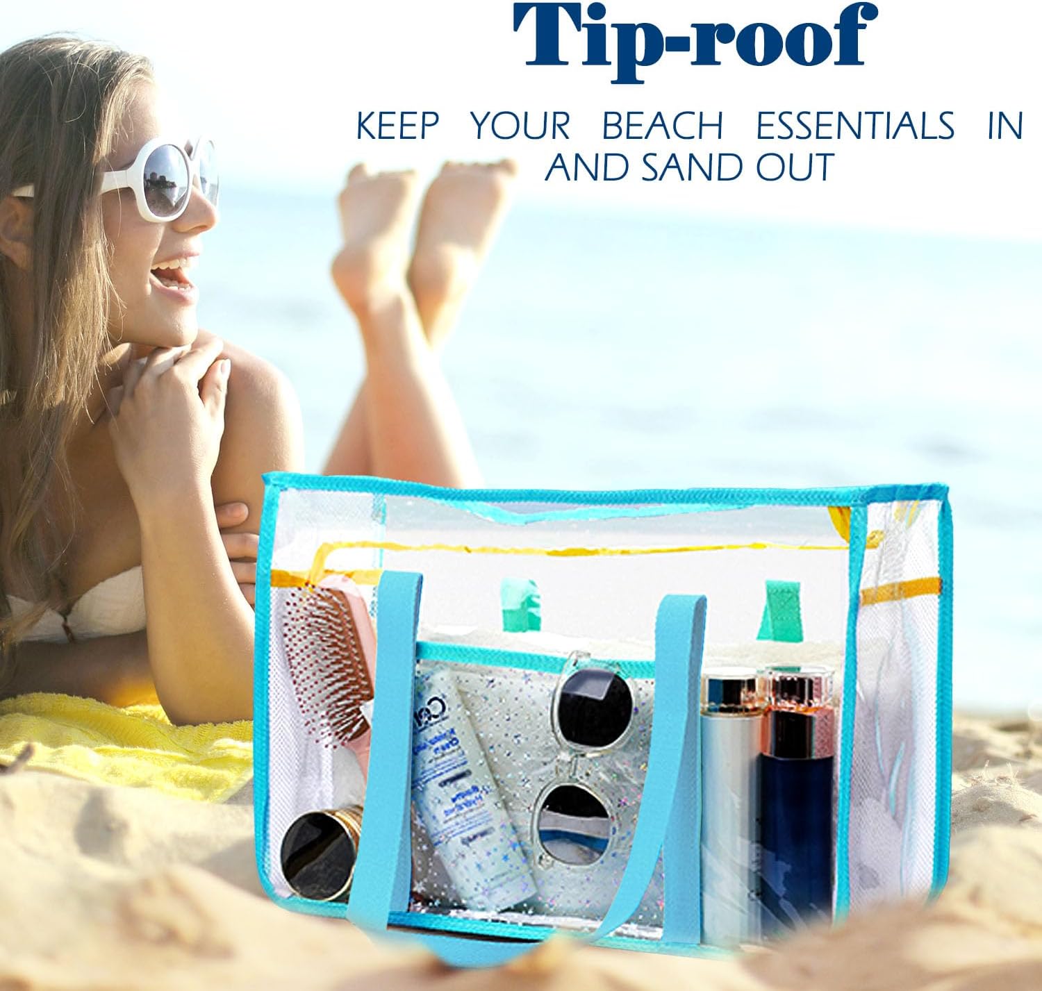 Vásárolj 1-et, és a második ingyen – Extra nagy átlátszó hálós tengerparti táska 8 zsebbel – ClearWave
