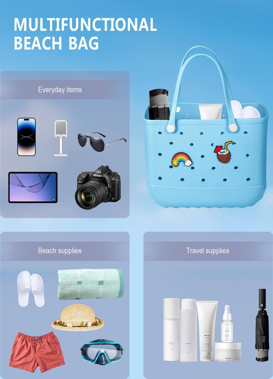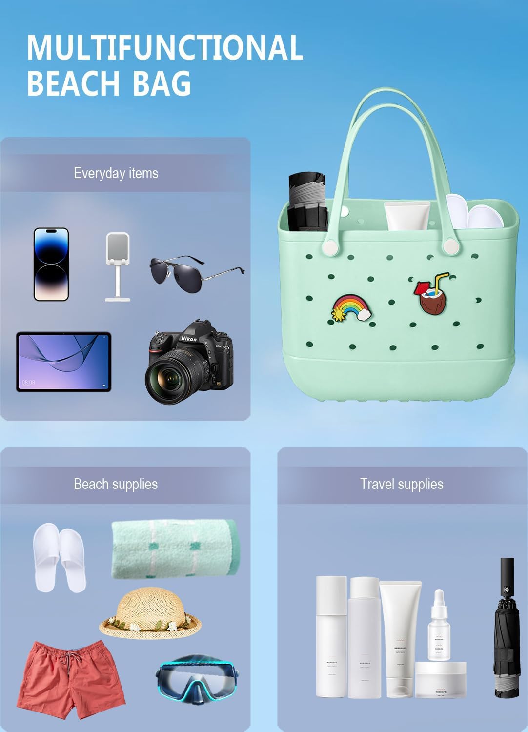 Vízálló EVA strandtáska – Nagy és mosható szállító táska szabadtéri használatra